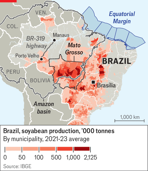 As it has gained power, the composition of Congress has shifted rightwards. Though Mr Bolsonaro lost the presidential election in 2022, his party and centre-right groupings swept the legislature. The rural caucus now comprises almost two-thirds of lawmakers in both houses. The lobby is particularly strong at a local level. Lawmakers in Mato Grosso, Brazil’s soyabean heartland, are trying to have parts of the state reclassified as tropical savannah instead of Amazon. This would let farmers raze 65% of trees on their land, instead of only 20%. Governors elsewhere are gunning for looser licensing laws. This would allow for the completion of the BR-319, a once-abandoned 900km (550-mile) highway that cuts through pristine jungle. Lula has promised to finish much of the road by the end of his term.