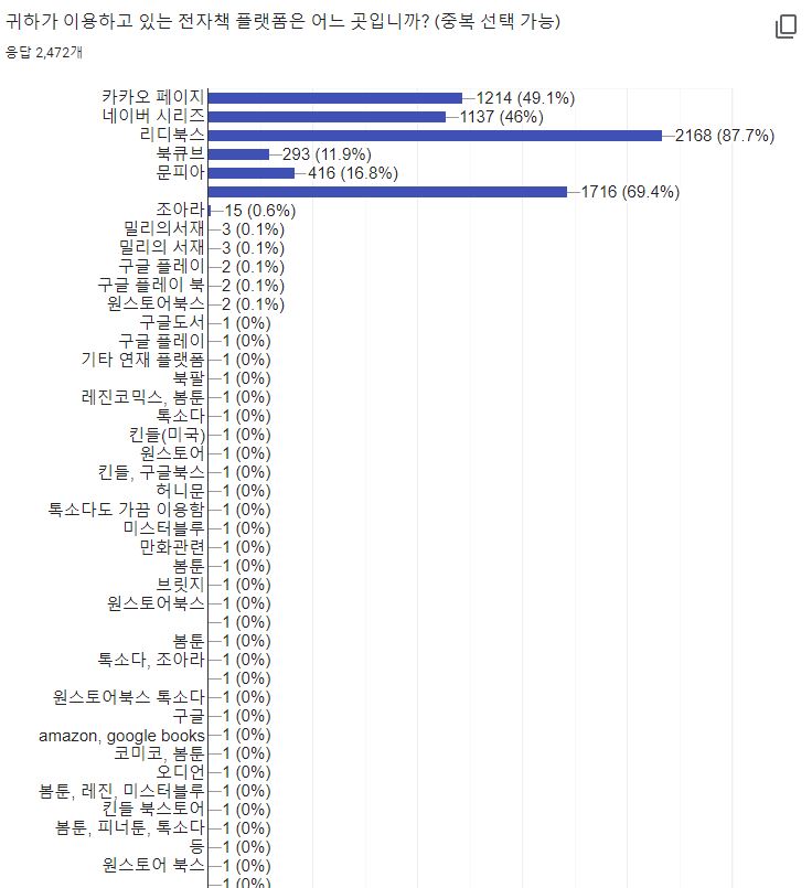 도서정가제 전자책 이용실태 설문조사 (응답자수:2,472명)