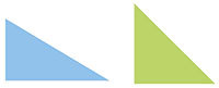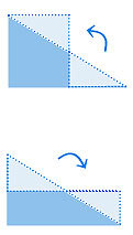 지산이는 삼각형을 넓이가 1㎠인 단위넓이로 나눌 수 없기 때문에 평행사변형의 넓이를 계산하는 방법과 같이 직각삼각형의 일부분을 떼어서 붙이면 직사각형을 만들 수 있는지를 알아보기로 했습니다. 지산이와 동성이는 종이에 직각삼각형 모양을 오렸습니다. 지산이와 동성이는 오린 직각삼각형에서 어떤 부분을 떼어서 다른 곳에 붙이면 직사각형이 되는지 찾고 있습니다.