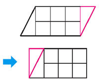 직사각형 넓이를 이용, 평행사변형 넓이 구하기