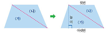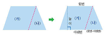 =(윗변)×(높이)+[(아랫변)-(윗변)]×(높이)÷2
