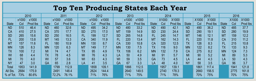 우리나라의 아카시아 때처럼 미국내의 많은 벌들이 이 3개주로 꿀을 뜨기 위해 이동합니다.