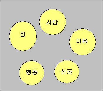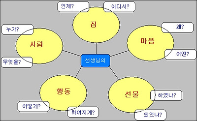 국어시간이다. 글짓기 훈련을 해야한다. 뭐라고 쓰지? 참 쓸거없다. 아무리 생각해봐도 당췌 그림이 잡히지 않는다. 이런 때는 구조론의 방법을 사용해야 한다. 예의 ‘집 - 사람 - 마음 - 행동 - 선물’에다 주제를 대는 것이다.