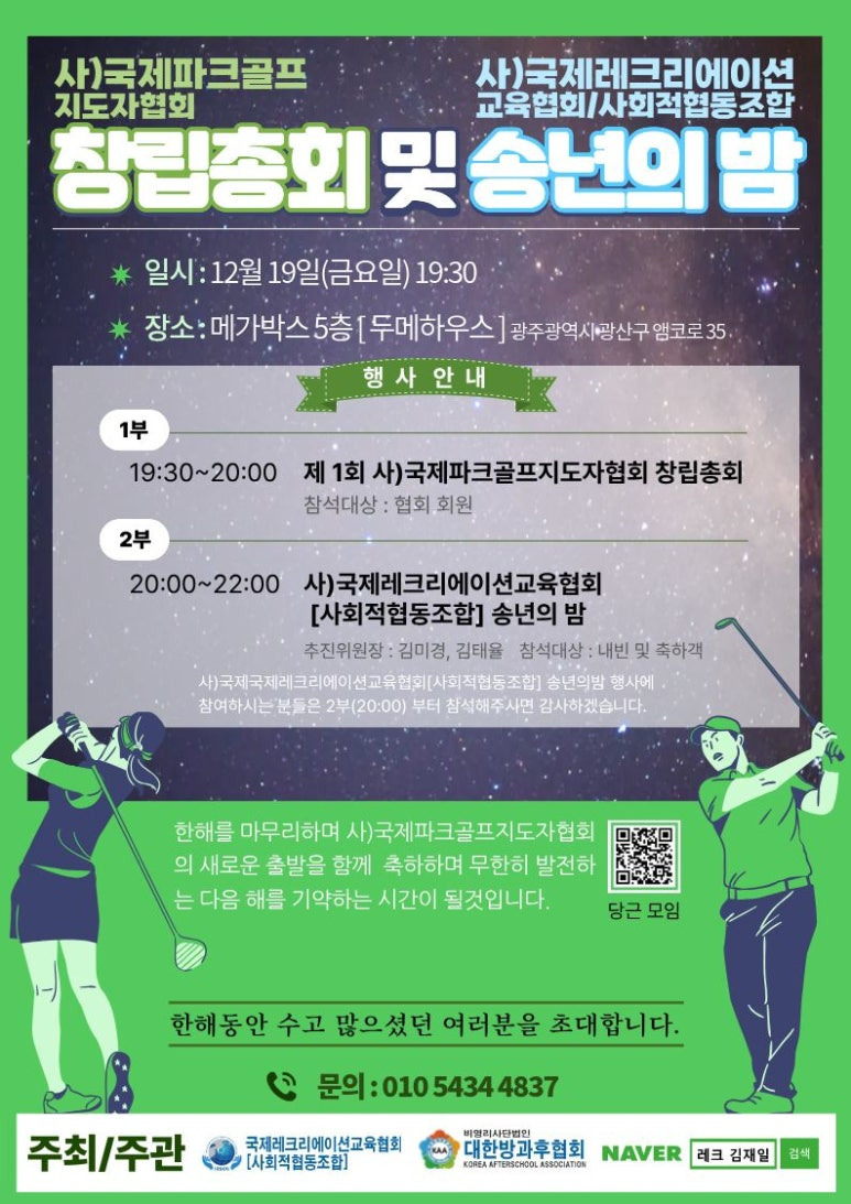 국제파크골프지도자협회 창립총회와 국제레크리에이션 교육협회(사회적 협동조합) 송년의 밤 행사가