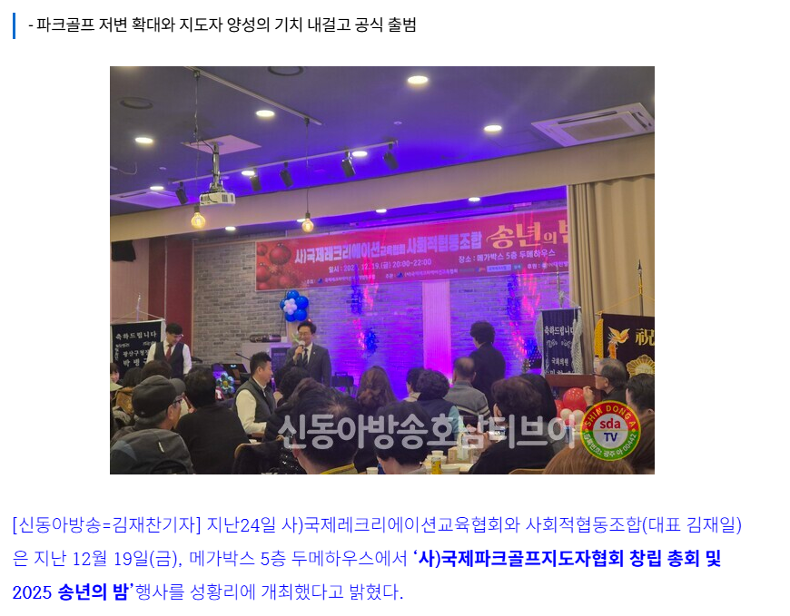 국제레크리에이션교육협회 (사회적협동조합) 송년의 밤 작성자차돌이|작성시간25.12.31|조회수2 목록 댓글 0 글자크기 작게가 글자크기 크게가 https://www.sdatv-honam.com/news/articleView.html?idxno=3780 다음검색 현재 게시글 추가 기능 열기 북마크 신고 센터로 신고 댓글 댓글 0 댓글쓰기 댓글 리스트