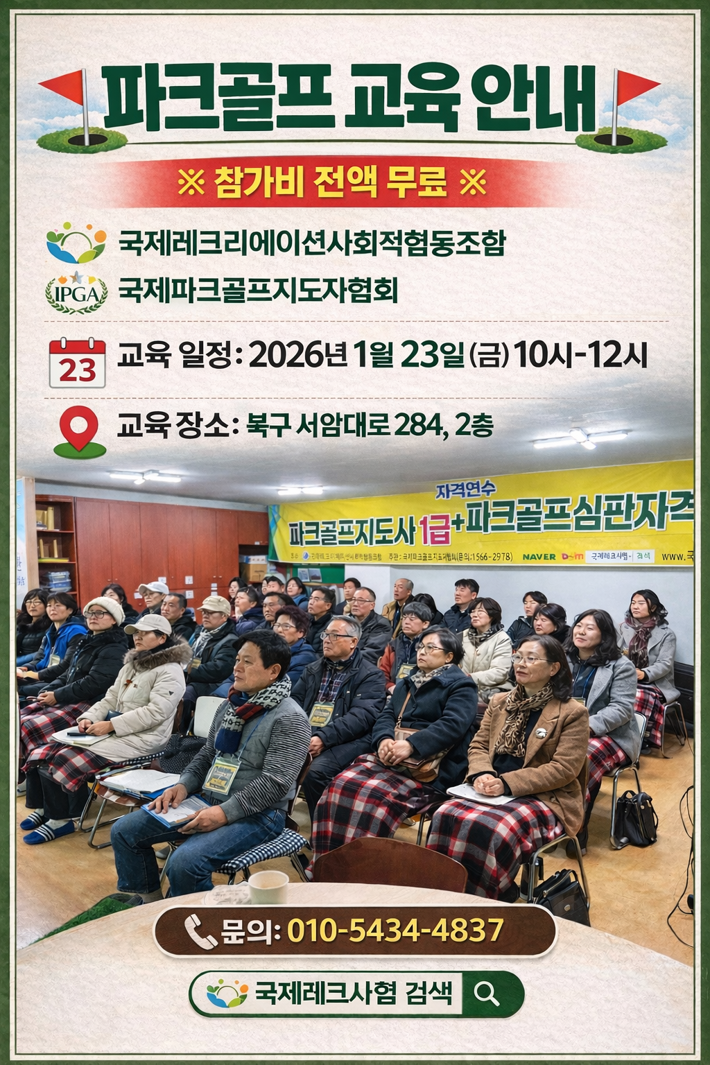 2026년도 파크골프 무료교육 작성자김재일|작성시간26.01.17|조회수19 목록 댓글 0 글자크기 작게가 글자크기 크게가 다음검색 현재 게시글 추가 기능 열기 북마크 신고 센터로 신고 댓글 댓글 0 댓글쓰기 댓글 리스트