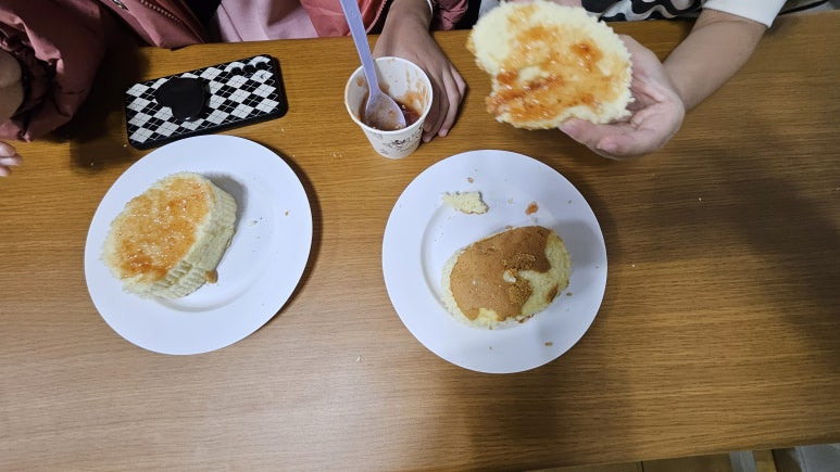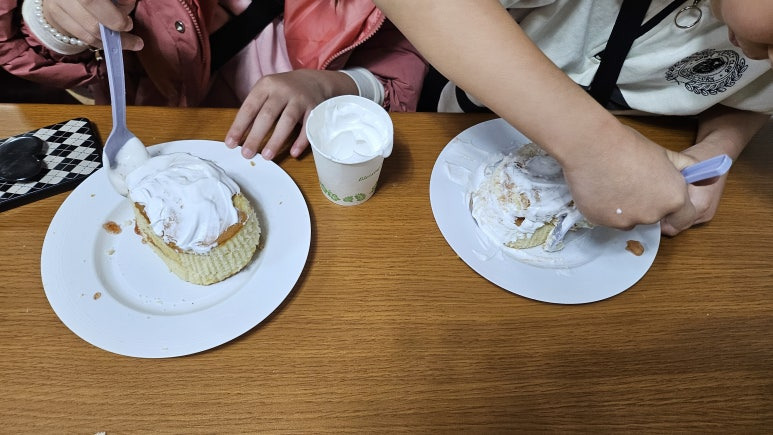 직접 가져가서 먹을 케이크를 만드는 모습도 꽤 진지했습니다.