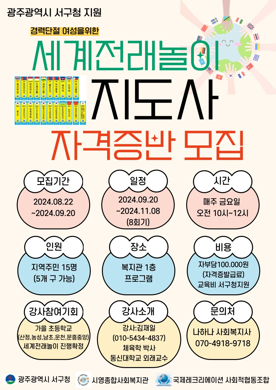 경력단절 여성을 위한 세계전래놀이 지도사 자격증반을 모집합니다!