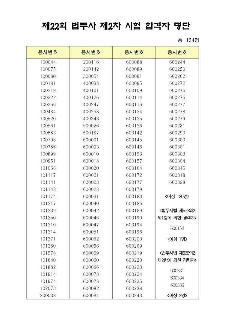 제22회 법무사 제2차 시험 합격자 발표 안내 및 제3차 시험 시행계획을