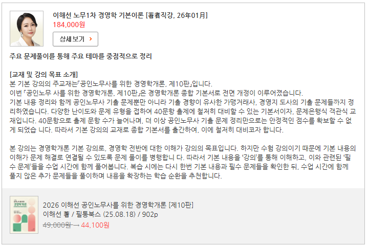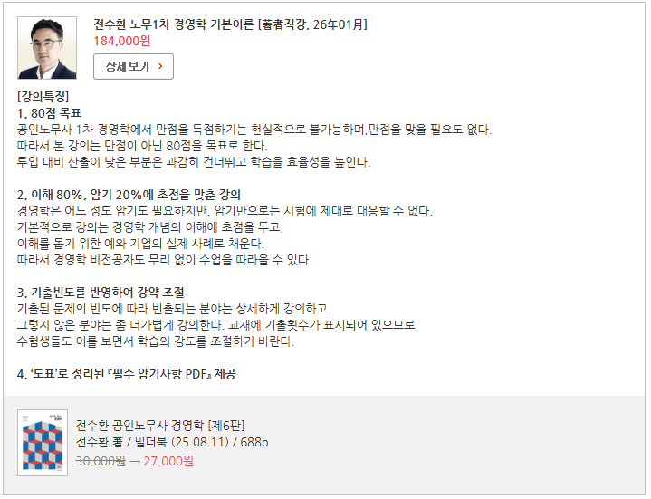 [동영상강의] 이해선, 전수환 경영학 기본이론 +샘플강의 작성자합격의법학원|작성시간26.01.30|조회수7 목록 댓글 0 글자크기 작게가 글자크기 크게가 https://youtu.be/qbglw2p65UQ https://youtu.be/oVBjS4ltD4Y 다음검색 현재 게시글 추가 기능 열기 북마크 공유하기 신고 센터로 신고 댓글 댓글 0 댓글쓰기 답글쓰기 댓글 리스트