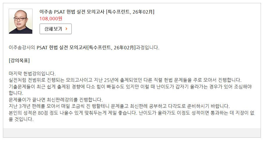 D-32 실전파이널 PSAT 이주송 헌법 실전모의고사 개강 +샘플강의 #최신판례정지 #80점목표 작성자합격의법학원|작성시간26.02.03|조회수5 목록 댓글 0 글자크기 작게가 글자크기 크게가 https://youtu.be/oPFvXtdFxXE 다음검색 현재 게시글 추가 기능 열기 북마크 공유하기 신고 센터로 신고 댓글 댓글 0 댓글쓰기 답글쓰기 댓글 리스트