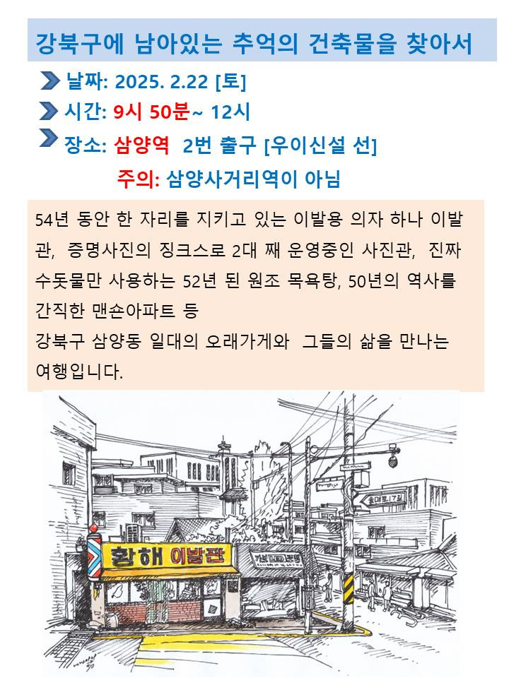 🌻2025년 2월 22일(토) 오전 9시50분, 삼양역 2번 출구(우이신설 선 /※삼양사거리역이 아님)에서 만나요!