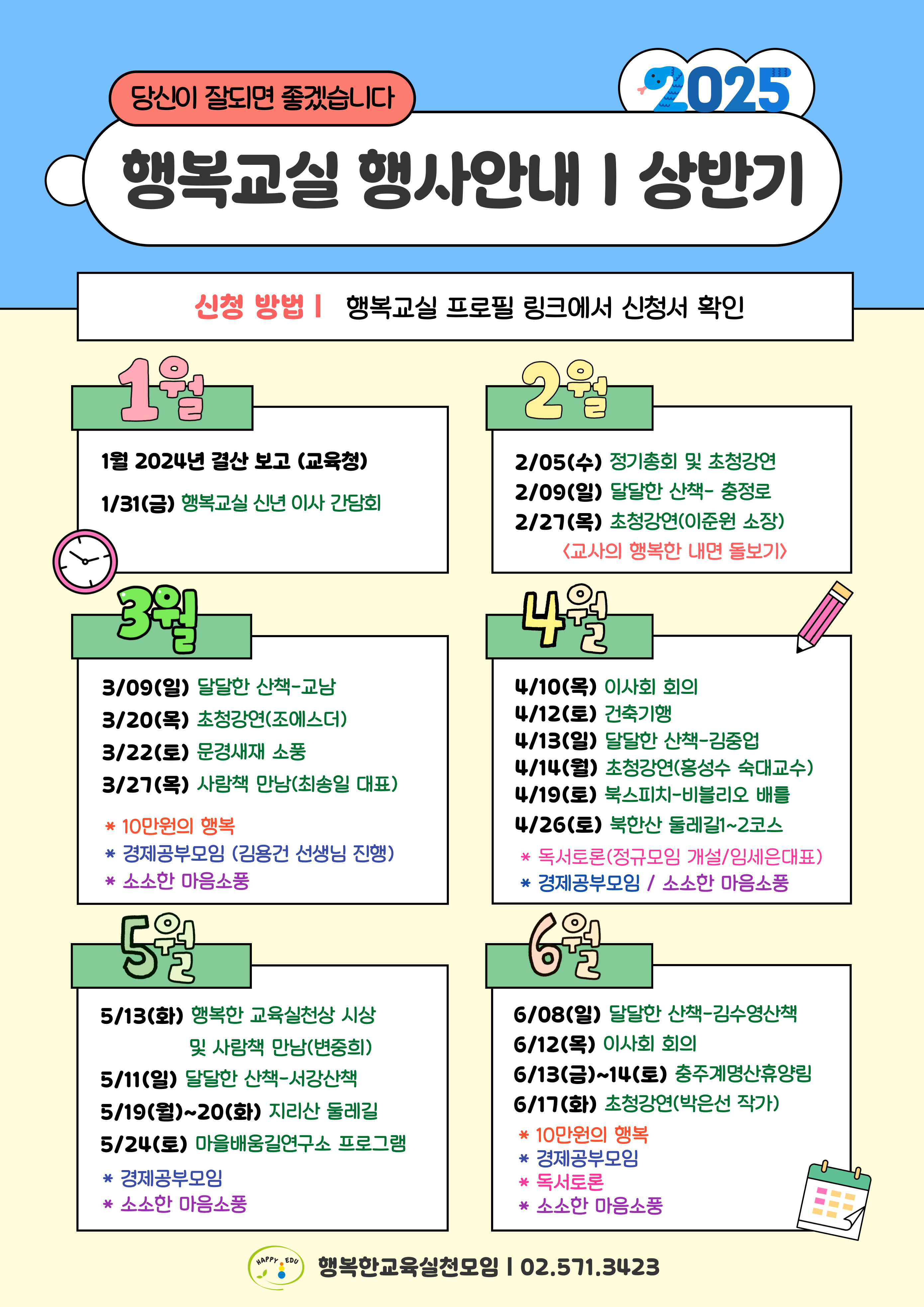 선생님들 마음에도 꽃을 피우는 행복교실의 다양한 상반기 프로그램들이 확정되어 공지를 드립니다. 눈여겨보시고 미리 스케줄에 체크해두시면 좋을 것 같습니다. 오늘부터 신청 받는 프로그램도 있으니 놓치지 마세요!