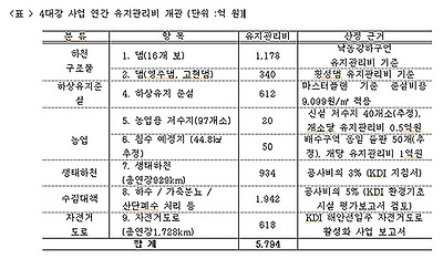 5. 4대강 유지관리비용: 5794억 원