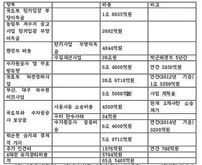 이상과 같이 산정한 4대강 사업의 부작용에 대처하기 위하여 추가로 필요한 비용은 약 65조5405억 원으로 추산된다.