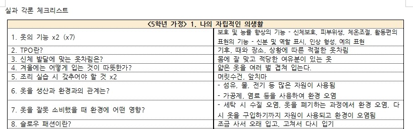 실과의 경우에는 이런 식으로 체크리스트를 활용했구요.