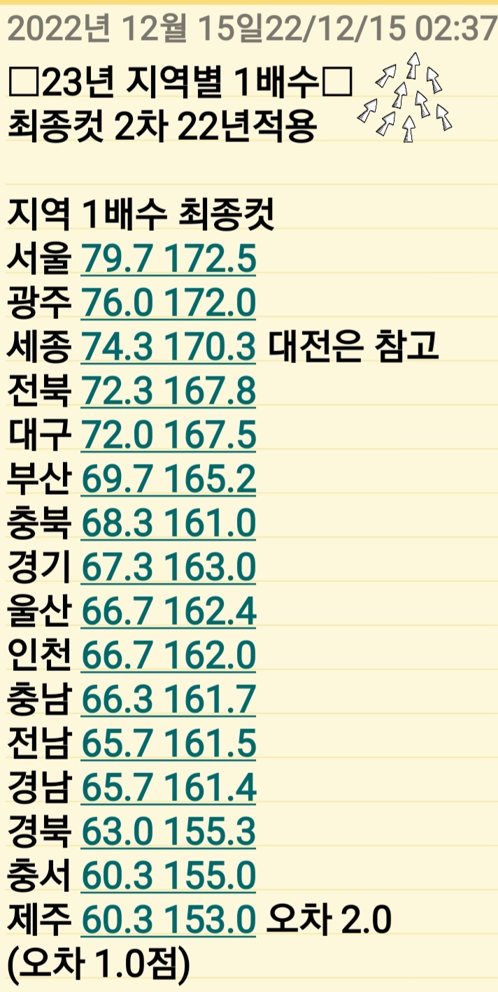 이번에 티오가많아서 합격의희망을 놓지않고있지만 다른전북친구들이 너무잘봐서(주변봐도70후) 움츠러듭니다.