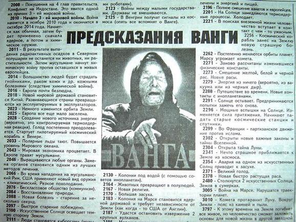 러시아 프라우다, 더 피플스 보이스 등의 언론에 보도된 반젤리나 구쉬테로바(바바뱅가)의 예언