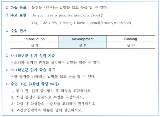 영어 뿐 아니라 일반 수업실연에서도 조건을 2회 이상 강조하는 게 중요합니다.
