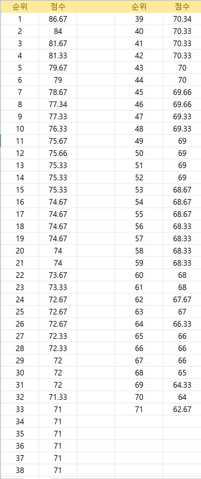 - ํ๋ณธ ๋ด ์ค์๊ฐ: 71.00 (์ด์ ๊ณผ ๋์ผ)