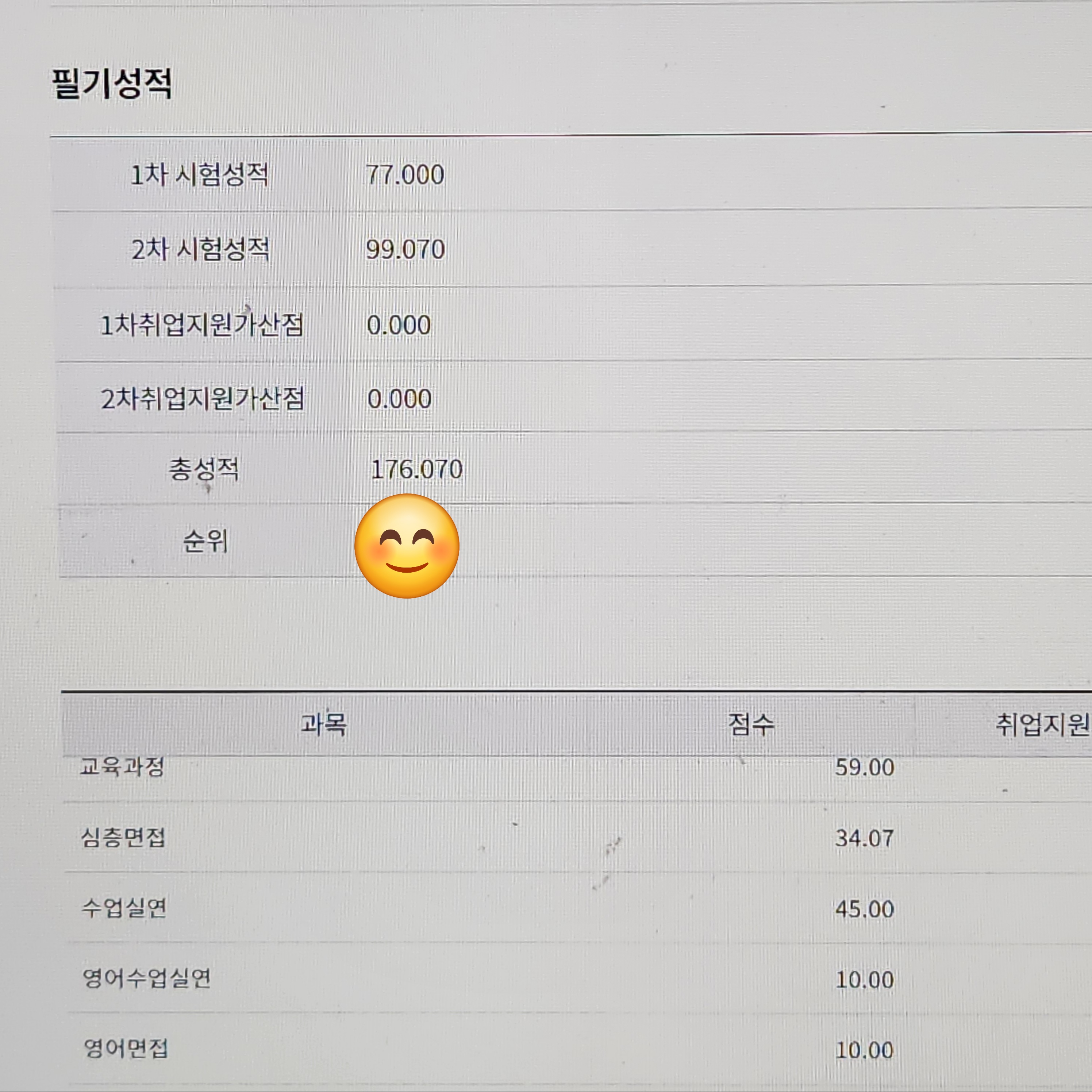 참고로 재수생이고, 1차 교육과정 점수가 많이 향상되었습니다.
