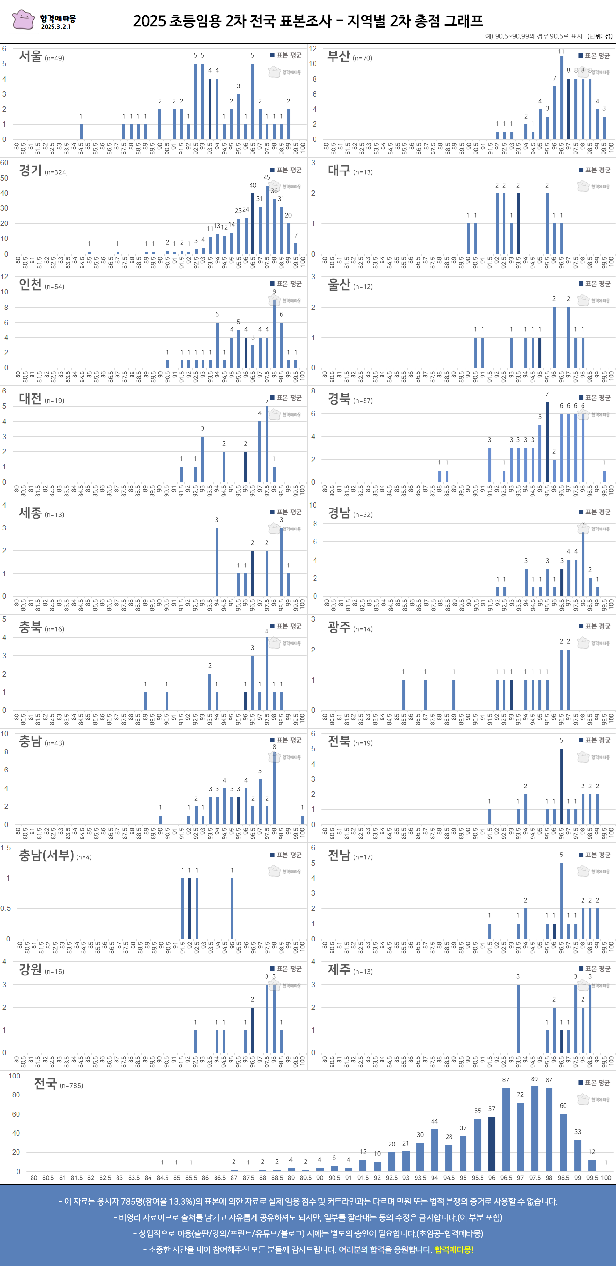 특히 1차 표본조사는 2차 시험 준비에 중요하게 작용하는 1차 1배수 점수를 알기 위해 서로가 서로에게 참여를 독려해주신 덕분에 많은 분들께서 참여해주셨어요.