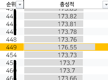 총성적은 점수대가 매우 촘촘하기 때문에 위 사진처럼 조금만 점수를 속여도 바로 알 수 있어요.
