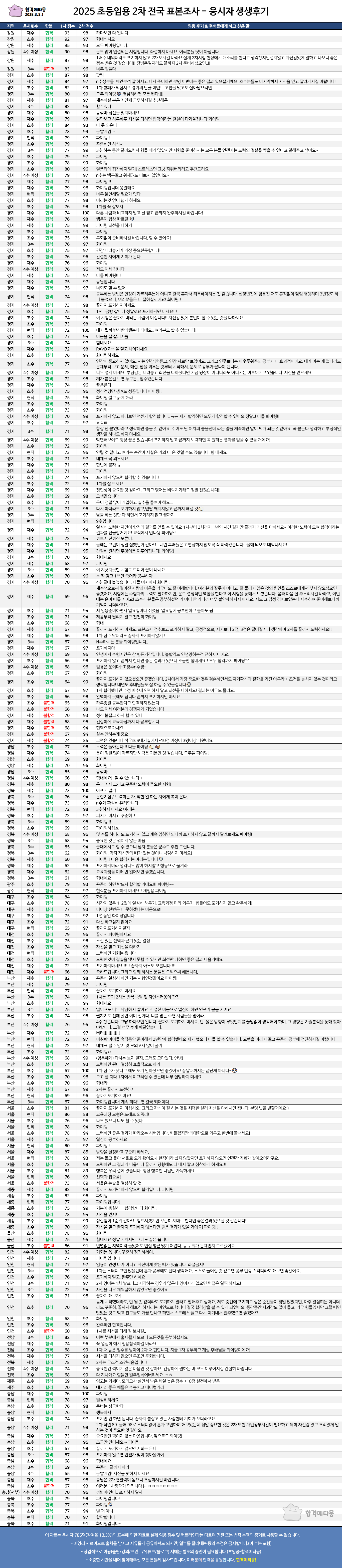 3.3. 시험장별 상세 점수표, 2차 뒤집기 사례표, 불합격 사례표 업로드, 응시자 생생후기 업로드