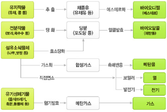 바이오 에너지 종류 및 변환;