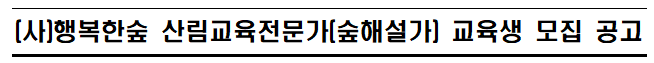 o 사단법인 행복한숲은 산림교육전문가 자격증 취득 이후 취업에 대해 책임지지 않음. 단, 숲해설가로서 활동할 수