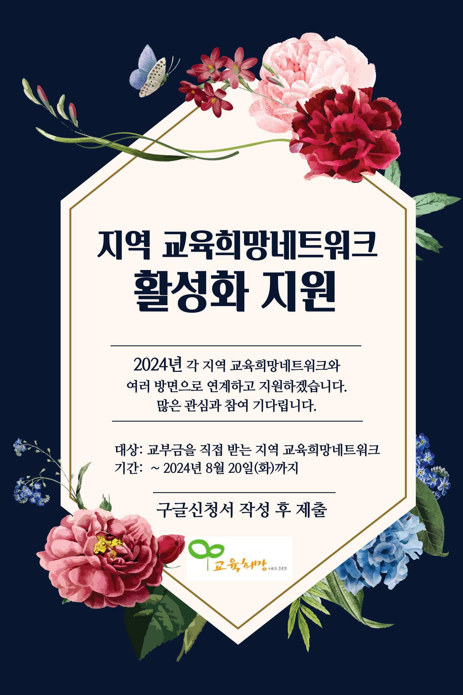 교육 현장에서 늘 수고해주시는 회원분들 모두 고맙습니다. 2023년에 이어 올해도 교육희망네트워크 운영위원회에서는 각 지역 교육희망네트워크와 여러 방면으로 연계하고 지원하고 함께하려 합니다. 어떤 지원이 필요한지 지역에서 서로 의견 나누고 알려주시면 필요한 지원을 하겠습니다.