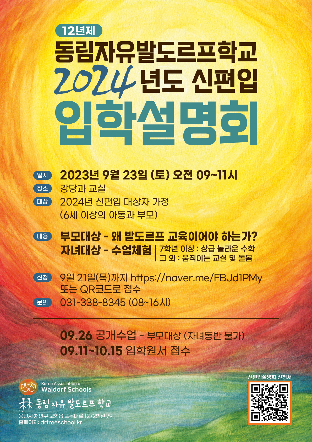 2024년은 동림자유발도르프학교가 12년제로 나아가는 첫해입니다.