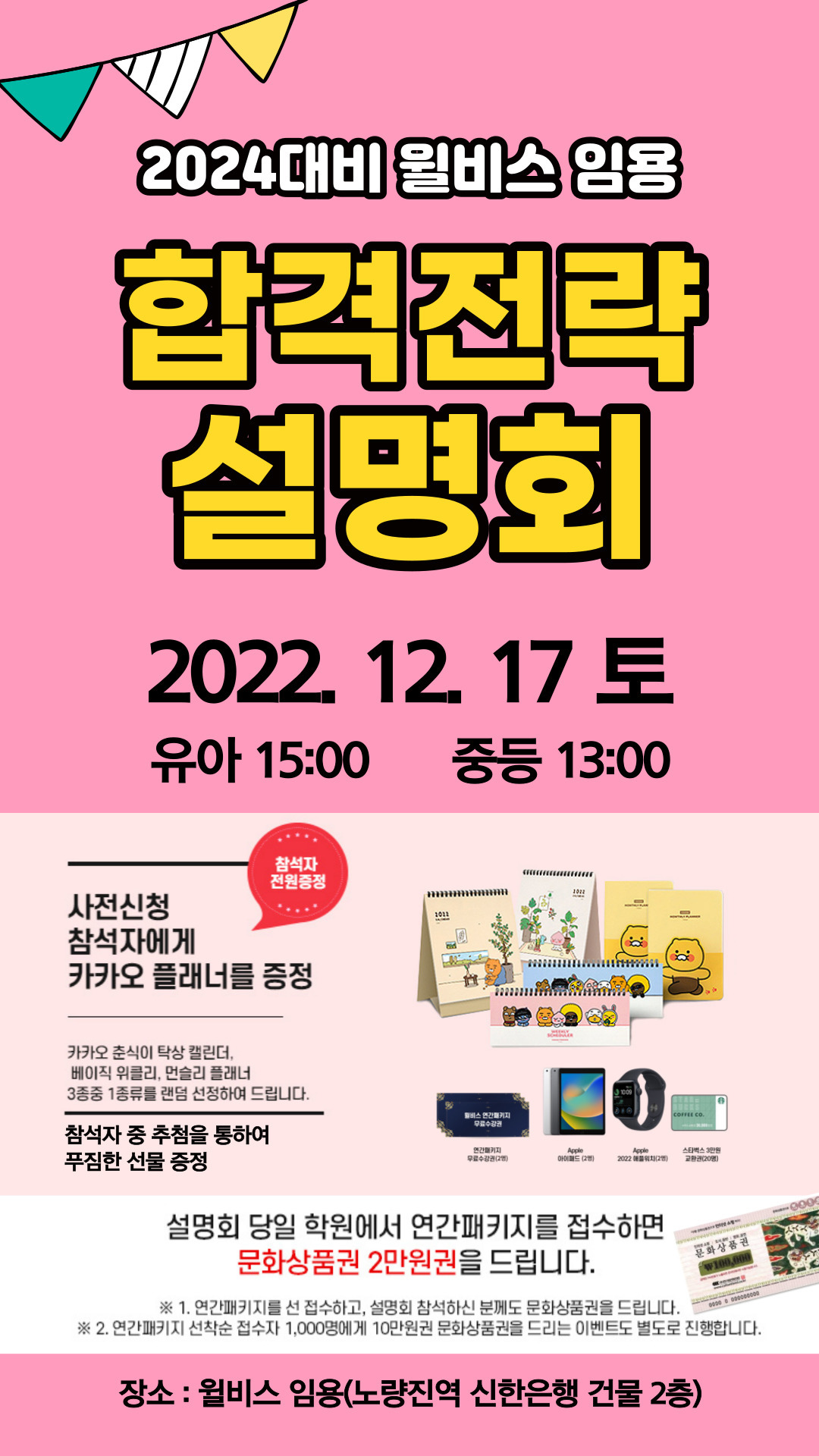 > 추첨을 통하여 아이패드, 애플워치, 패키지 수강권, 스타벅스 교환권을 드립니다 .