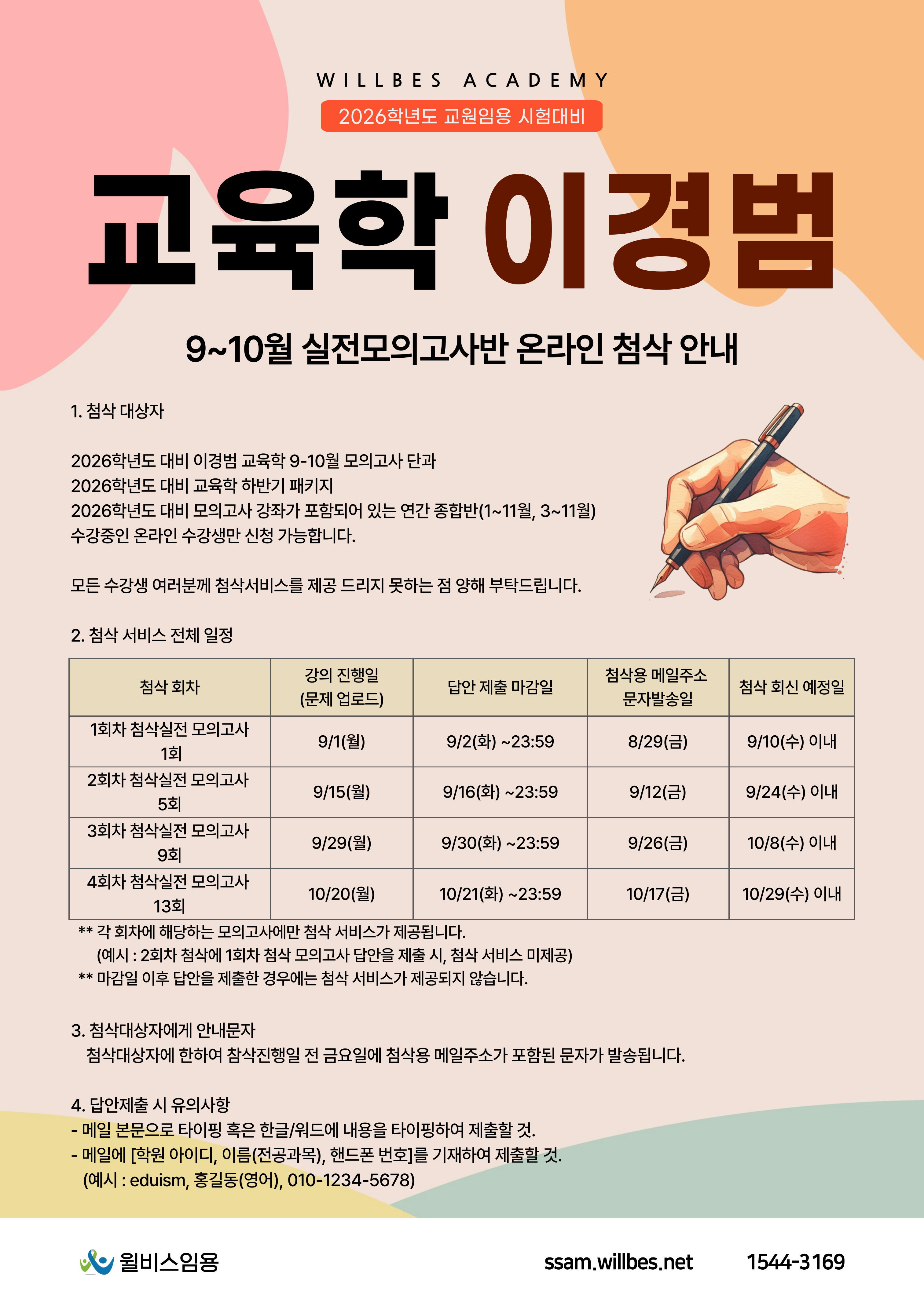 [스크랩] [교육학 이경범]🍁 2025 9~10월 실전 모의고사 개강안내_9/1(월) 개강🍁 작성자윌비스임용|작성시간25.08.22|조회수91 목록 댓글 0 글자크기 작게가 글자크기 크게가 ▶ 이경범 교육학 수강신청 바로가기 다음검색 스크랩 원문 : 한마음 교사되기[교원임용고시] 현재 게시글 추가 기능 열기 북마크 신고 센터로 신고 댓글 댓글 0 댓글쓰기 답글쓰기 댓글 리스트