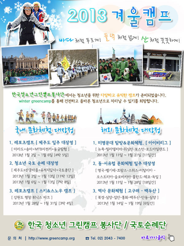한국 청소년 그린캠프 봉사단 www.greencamp.org입니다.