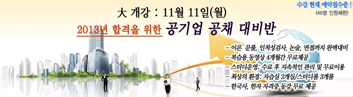 2013년 공기업 입사 준비 종로국가정보학원에서 완벽대비 하시길 바랍니다.
