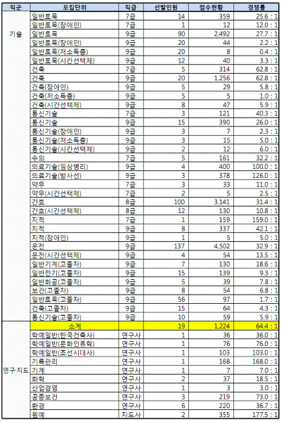 서울지방공무원 경쟁률은 직렬별 다음과 같습니다.