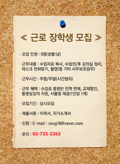 종로국가정보학원 근로장학생 관련 문의는 02) 725-2266으로 하시길 바랍니다.