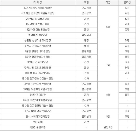 3) 육군 군무원 경채(경력경쟁채용) 합격선