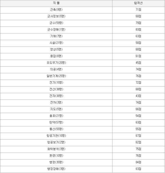더욱 줄어들어 군무원 합격선은