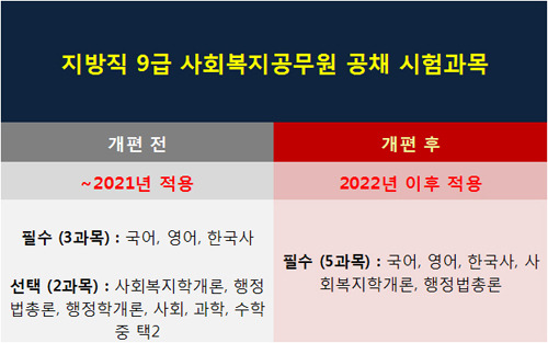 ■ 2022년 개편되는 9급 사회복지공무원 시험과목
