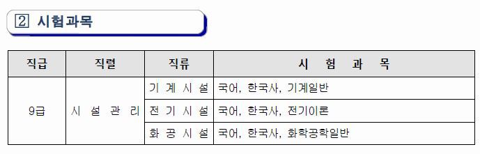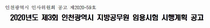 2020년 인천 지방직 공무원 경채 9급 시설관리직 시험 과목 일정