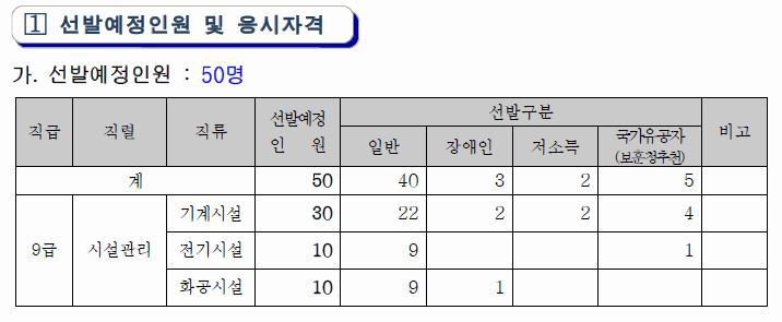 전기시설 일반 9명/국가유공자(보훈청추천) 1명
