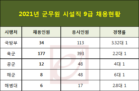 ● 군무원 시설직 채용정보 (선발인원 경쟁률 합격선)
