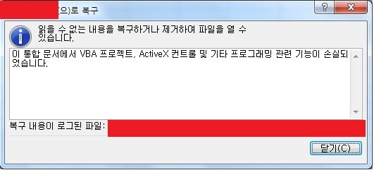 이 통합 문서에 VBA 프로젝트, ActiveX 컨트롤 및 기타 프로그래밍 관련 기능이 손실되었습니다.