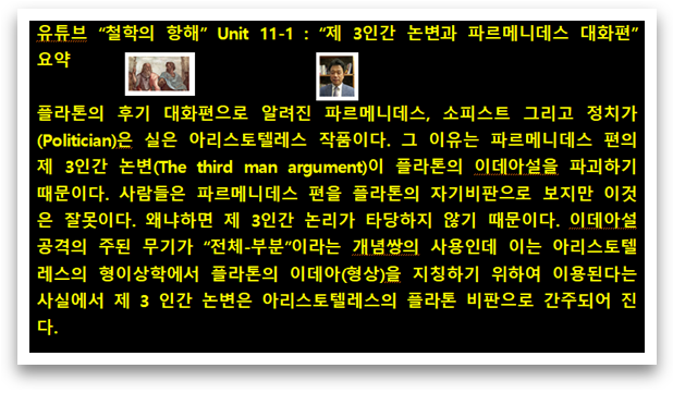 Unit 11-1 “제 삼 인간 논변”과 "파르메니데스" 대화