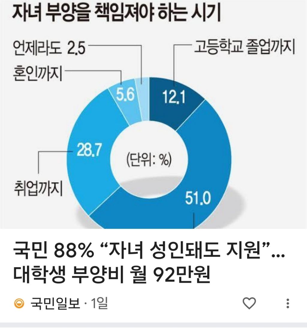대학생 자녀에게도 월평균 부양비가 92만원이라니 엄청납니다. 한국에서 부모의 운명은 참으로 가혹합니다. 이러니 대부분 결혼을 포기합니다.