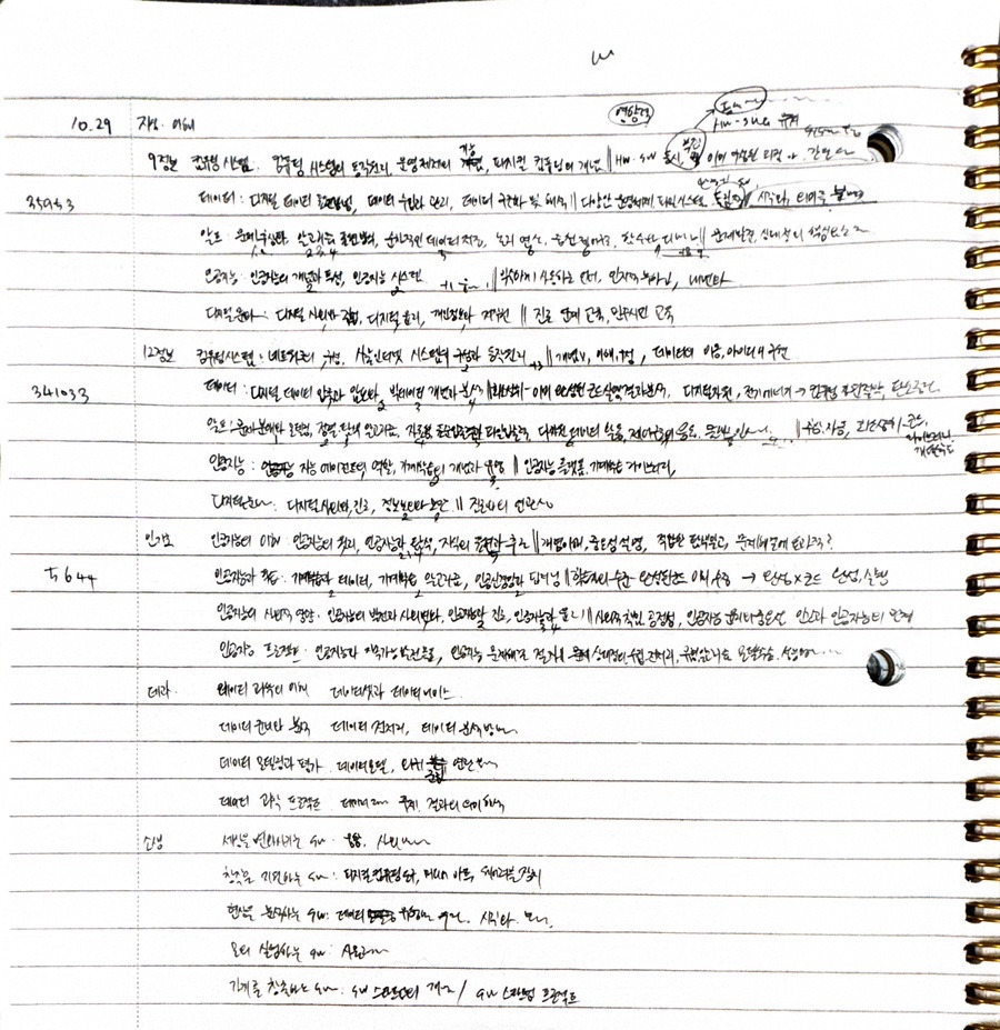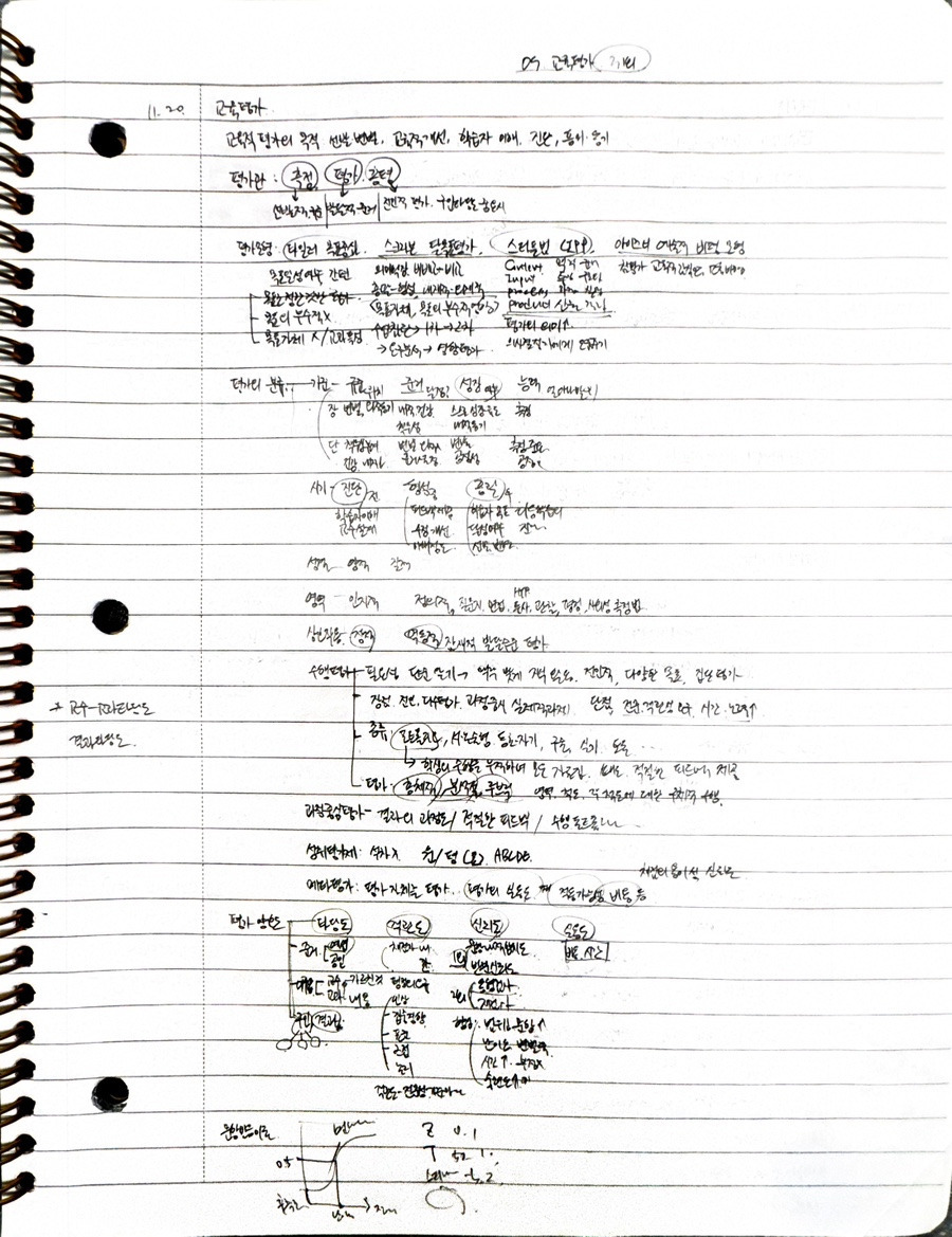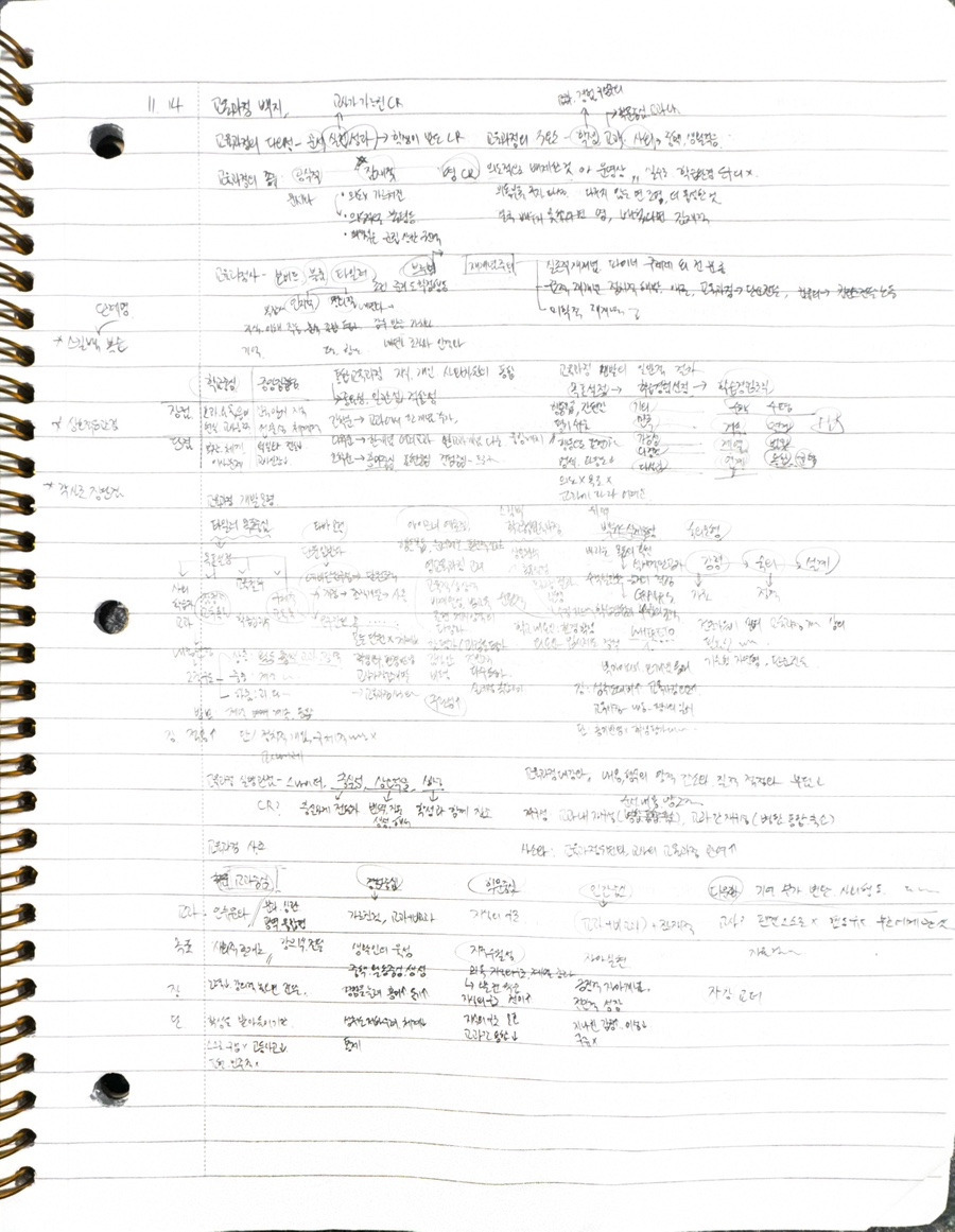 이건 시험 직전 마지막 5일에 5과목 복습한 종이입니다