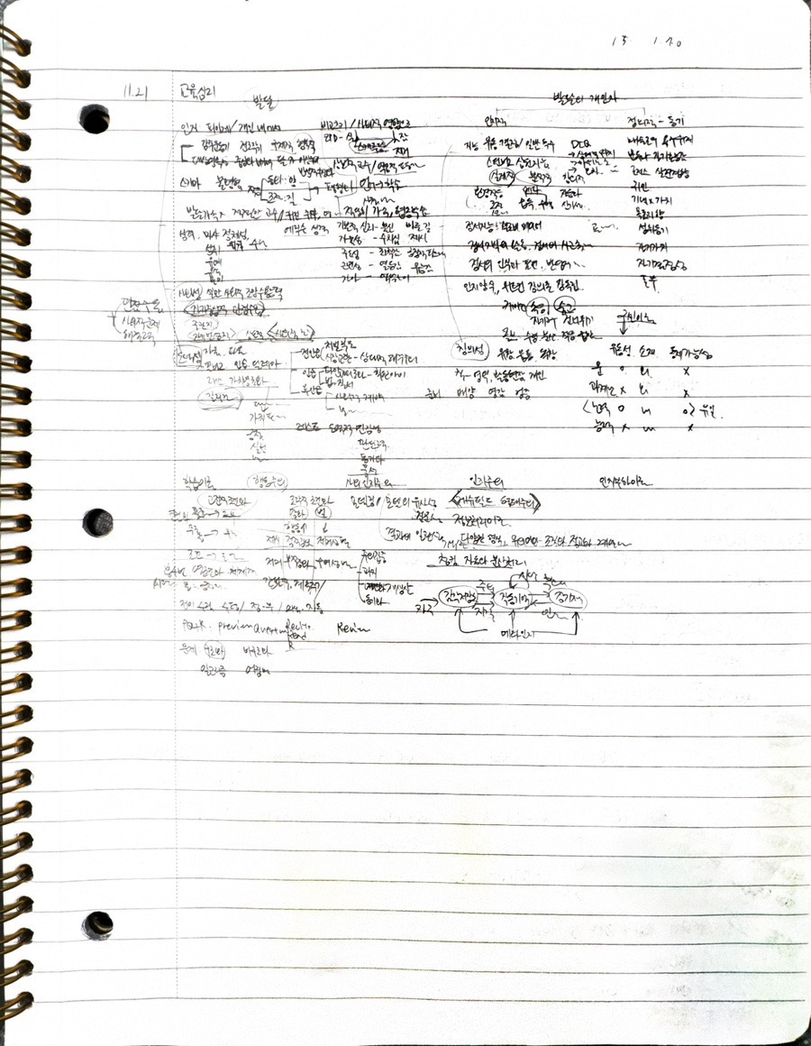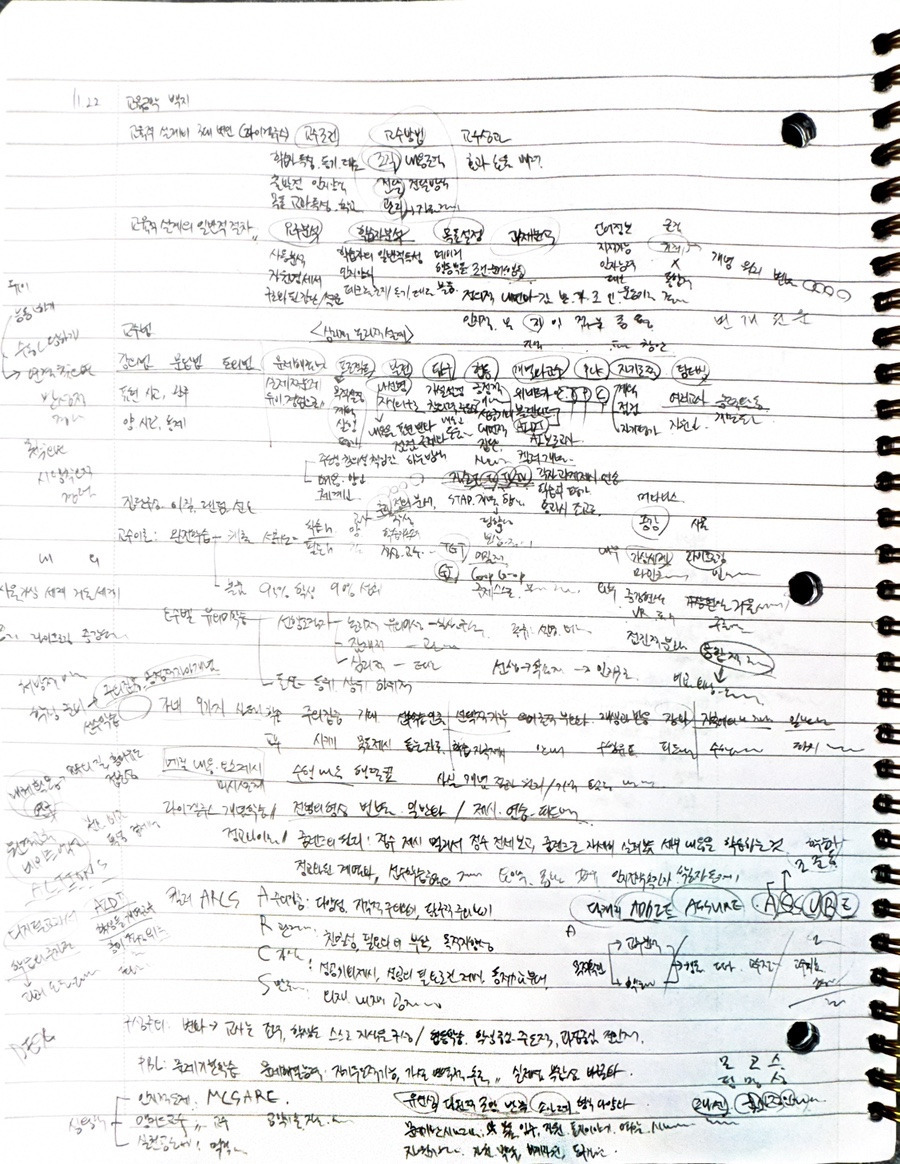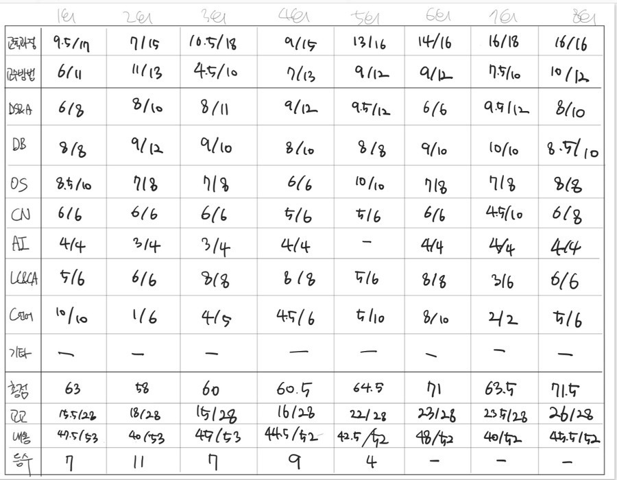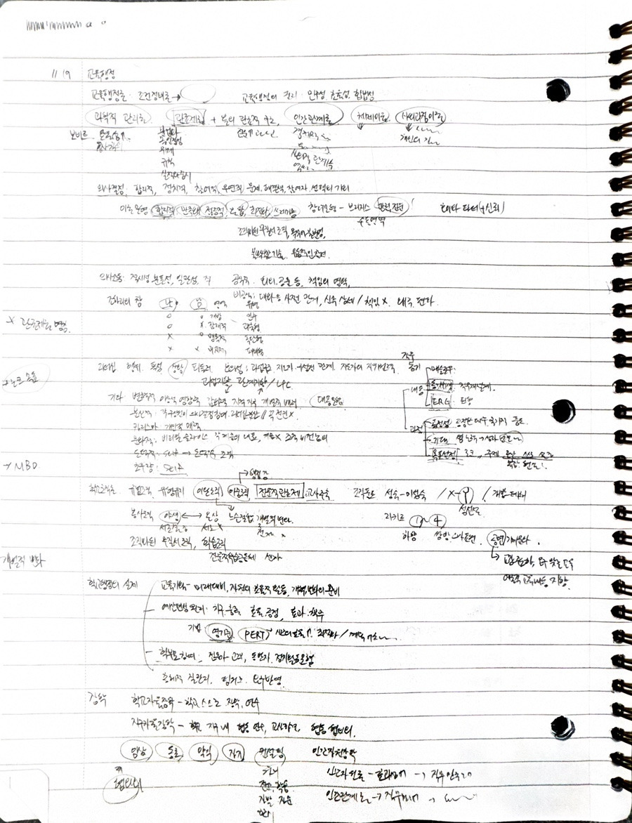 이건 시험 직전 마지막 5일에 5과목 복습한 종이입니다