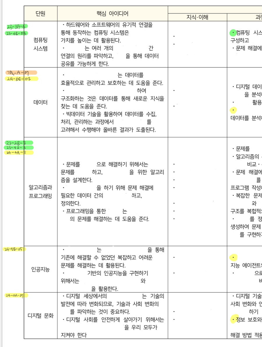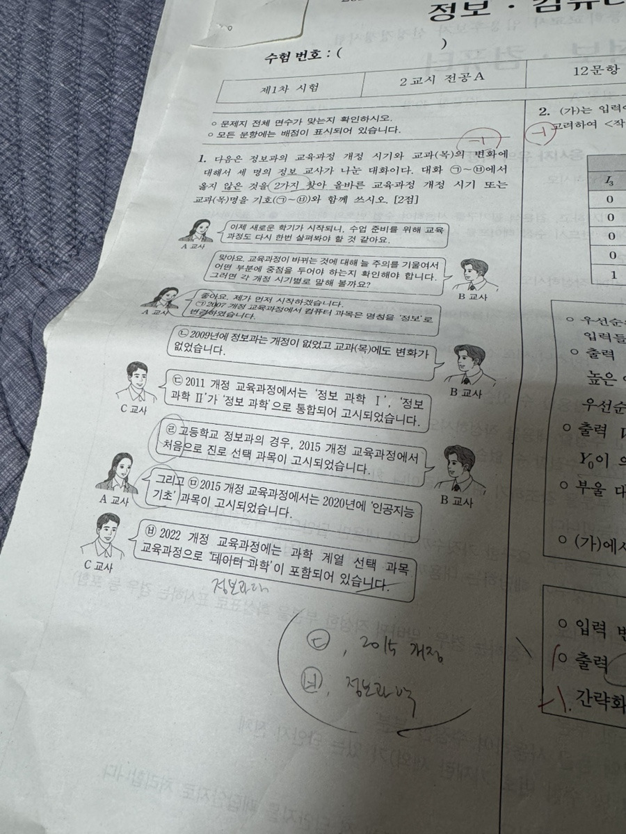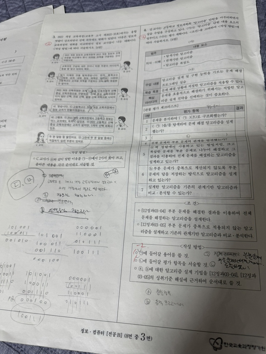 특히 4번은 정보과학의 성취기준을 “완벽하게” 생암기를 했어야 하는 문제인데, 저는 솔직히 정보과학 개정교육과정 본 적이 없습니다.